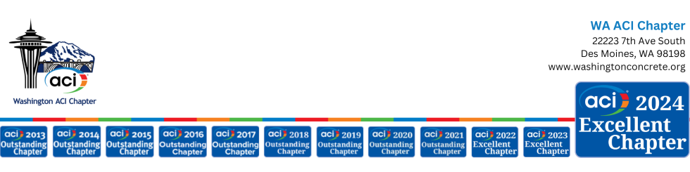 Other WA ACI Chapter events include a joint meeting with the Structural Engineers Association of Washington (SEAW) in February, the annual Clay Shoot in May, and the annual ACI Washington Chapter Golf Tournament (typically held in September).